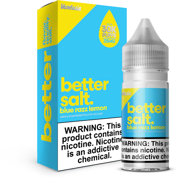 Blue Razz Lemon by Better Salt, is a fusion blend of blueberries, raspberries, and lemon, with a finish of cool menthol.