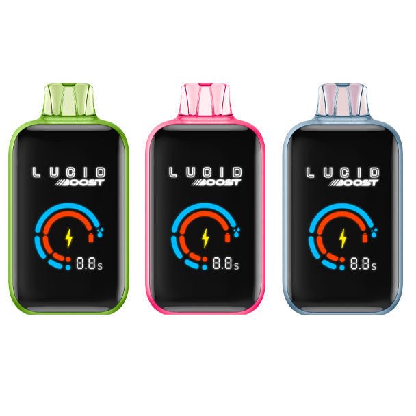 Step up your vaping experience with the Lucid Boost 20,123 Puffs Disposable Vape! This innovative device features a vibrant 2.5″ color screen, offering intuitive control at your fingertips. Experience the rich flavor and smooth hits of the dual mesh coil technology, coupled with adjustable airflow for a personalized vaping session. With a powerful 700mAh battery and convenient USB-C charging, you ll never be left hanging. Each unit comes with 18ml of 5% salt nic vape juice, ensuring you enjoy up to 20,123 puffs with boost mode turned off. The safety-focused child-lock switch ensures peace of mind. Discover the power of the Lucid Boost today!